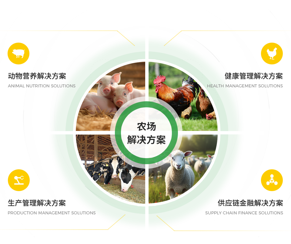 截止目前,集團(tuán)主要產(chǎn)品覆蓋豬、家禽、反芻動(dòng)物等,主要解決方案覆蓋動(dòng)物營養(yǎng)、生產(chǎn)管理、健康管理、供應(yīng)鏈金融方案等內(nèi)容,致力于成為農(nóng)場整體解決方案引領(lǐng)者,提升農(nóng)場生產(chǎn)安全和效能。